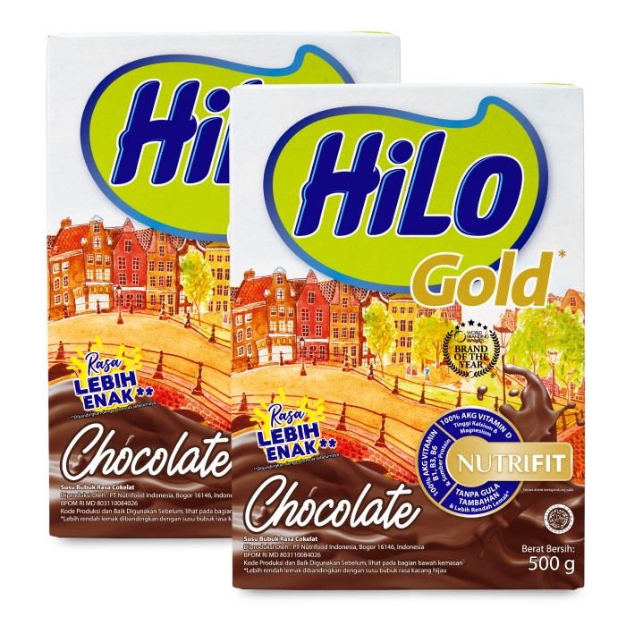 Twin Pack - HiLo gg00ldss Chocolate 500g - Susu Tinggi Kalsium Lebih Rendah Lemak