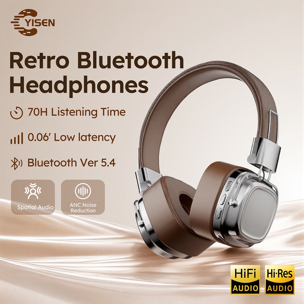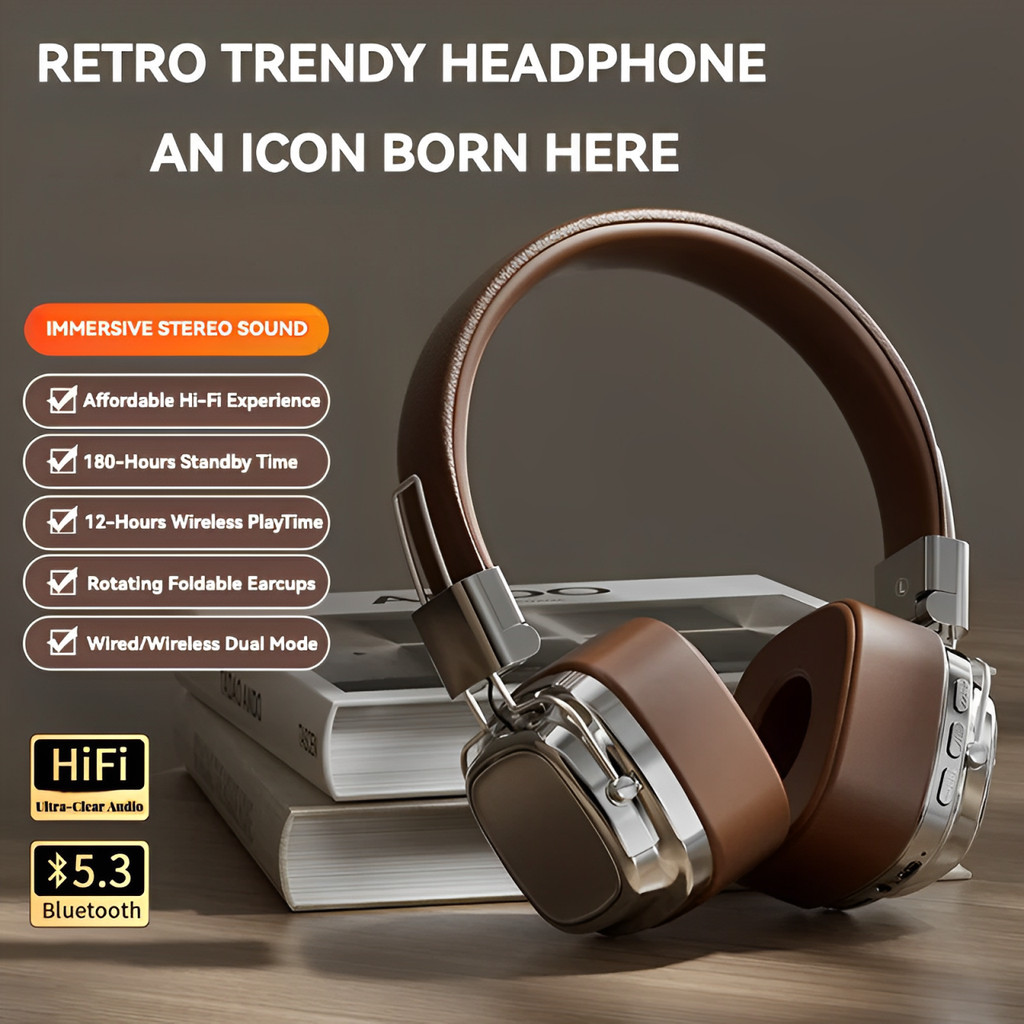 Headphone Over Ear Retro Baru Suara Stereo Bluetooth Nirkabel Bluetooth Headset Lipat Pilihan Gamer