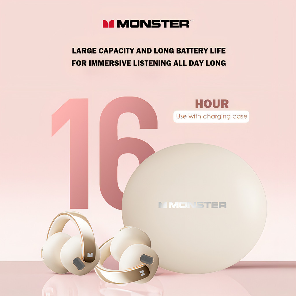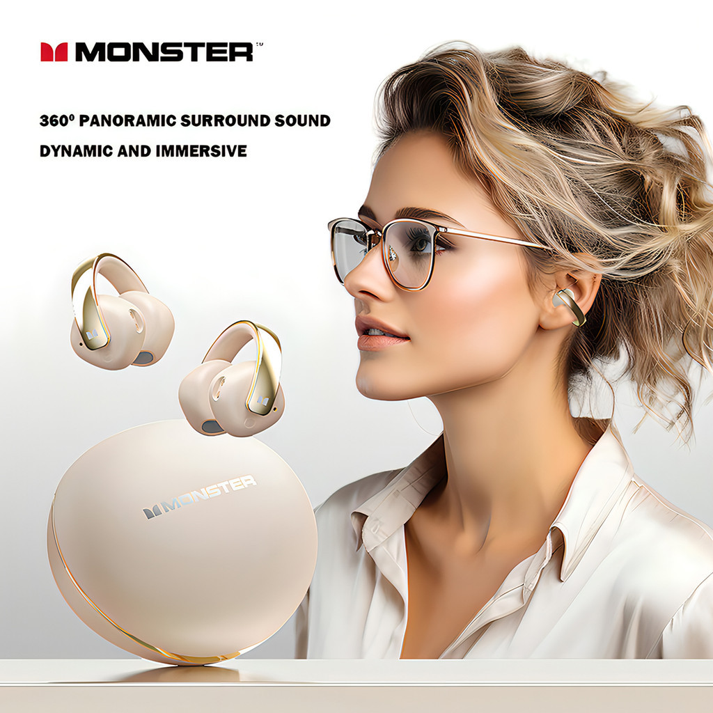 Monster XKT30 Ear Clip Wireless Bluetooth 5.4 Headsets Super Bass Music Earphones
