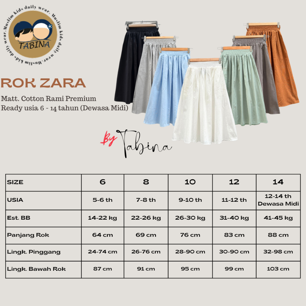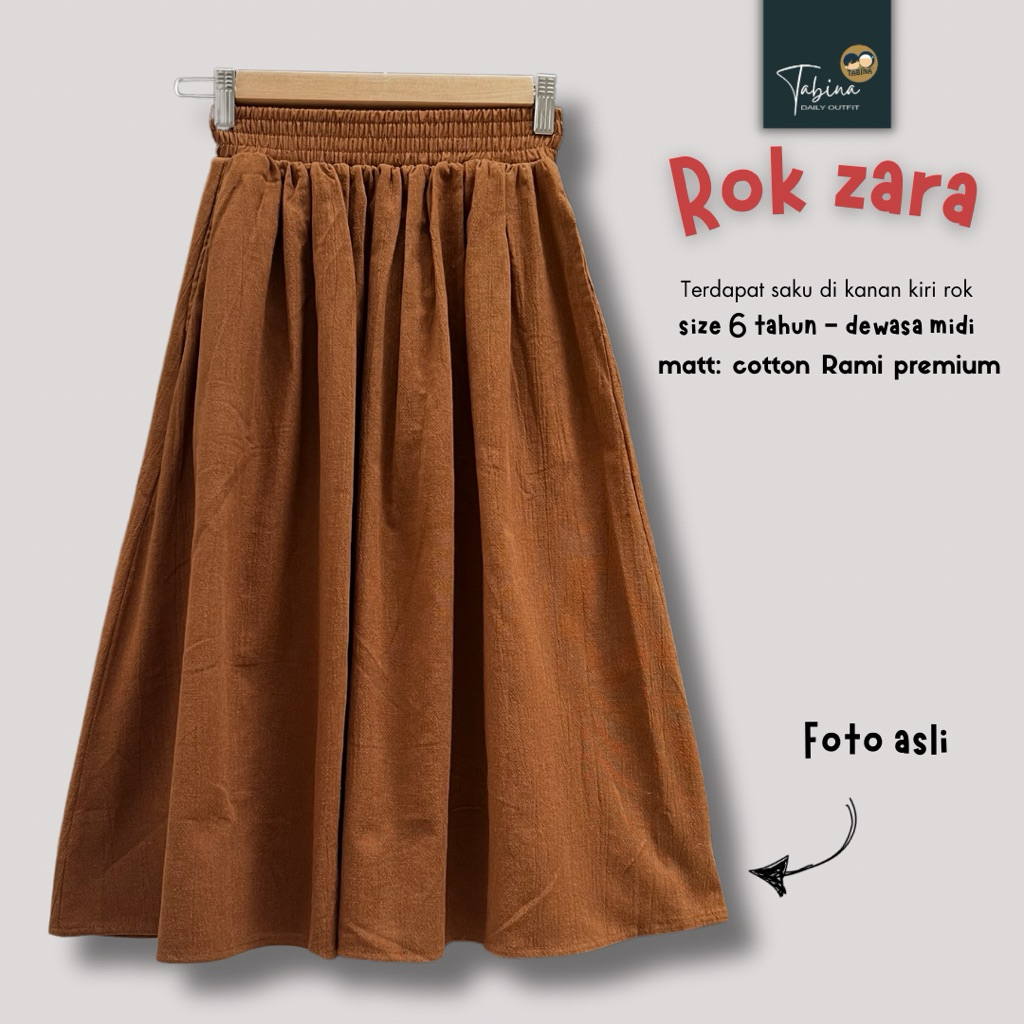 Tabina Rok Anak Perempuan Hingga Dewasa Midi Seri Zaraa Bahan Katun Rami Usia 5 Tahun Hingga Dewasa
