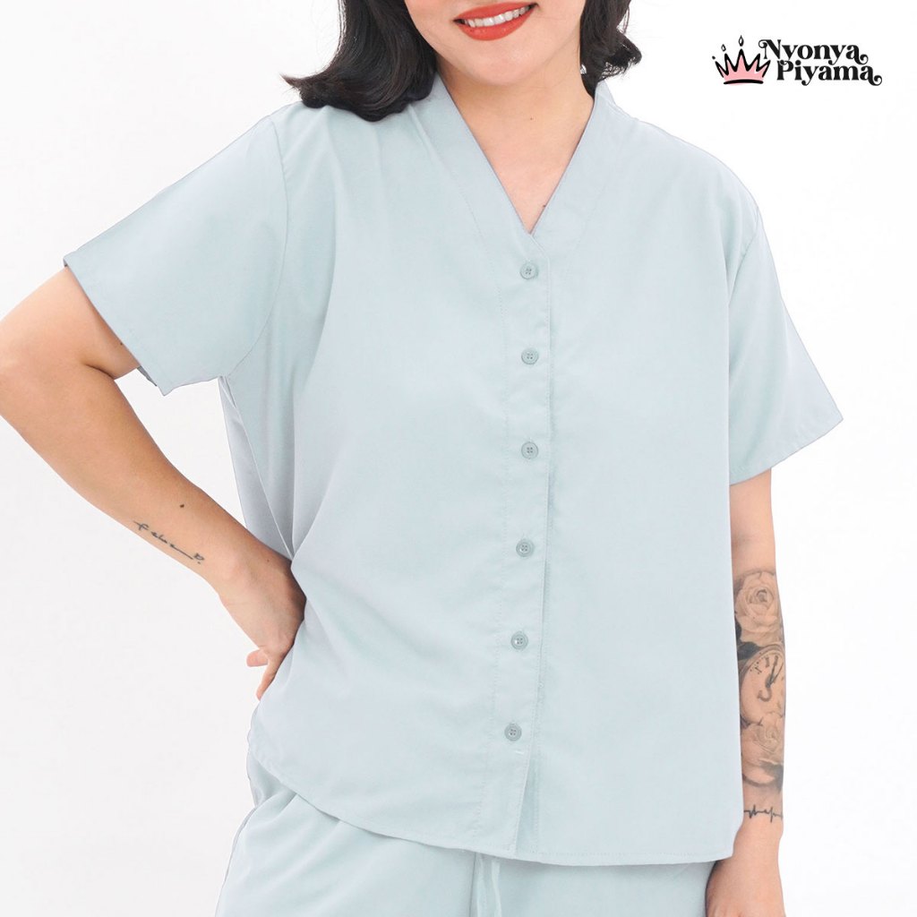 [BEST SELLER] Nyonya Piyama Poly Bamboo Oversized Cozy Set Couple Polos (Oceanaire Cozy)