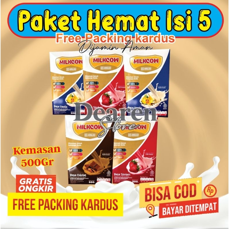 MILKCOW Susu Paket Hemat isi 5 box . susu penggemuk penambah berat badan anak maupun dewasa . k33m44ssan 500 gr