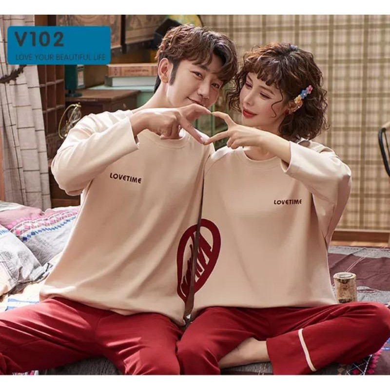 piyama pp wanita pria couple bahan kaos tebal import love