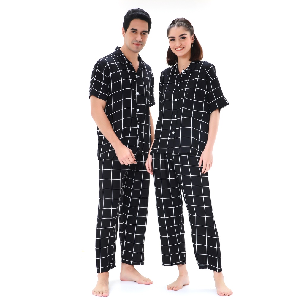 Zavyn Setelan Piyama Couple Rayon Setelan Kemeja Motif Premium