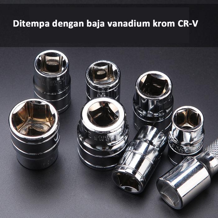 Kunci Shock Socket Wrench Set CR-V 12 pcs Drive Socket 1/4" Multifungsi