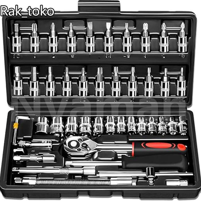 Set Kunci Sok Kunci Shock 46 pcs Mobil Motor Lengkap Socket Tool Kit set Pas Ring Motor Mobil - Hitam