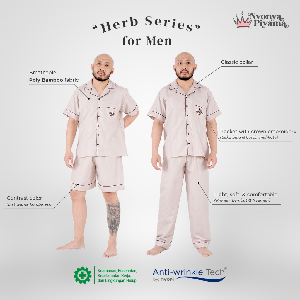 [BEST SELLER] Nyonya Piyama Poly Bamboo Set Piyama Couple (Fennel Polos Herb)