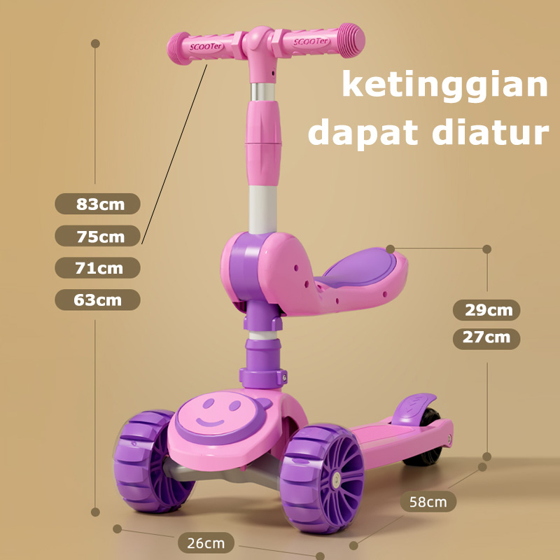 Skuter Anak Roda 3 Mainan Scooter Otoped Bisa Lipat dengan Lampu Musik