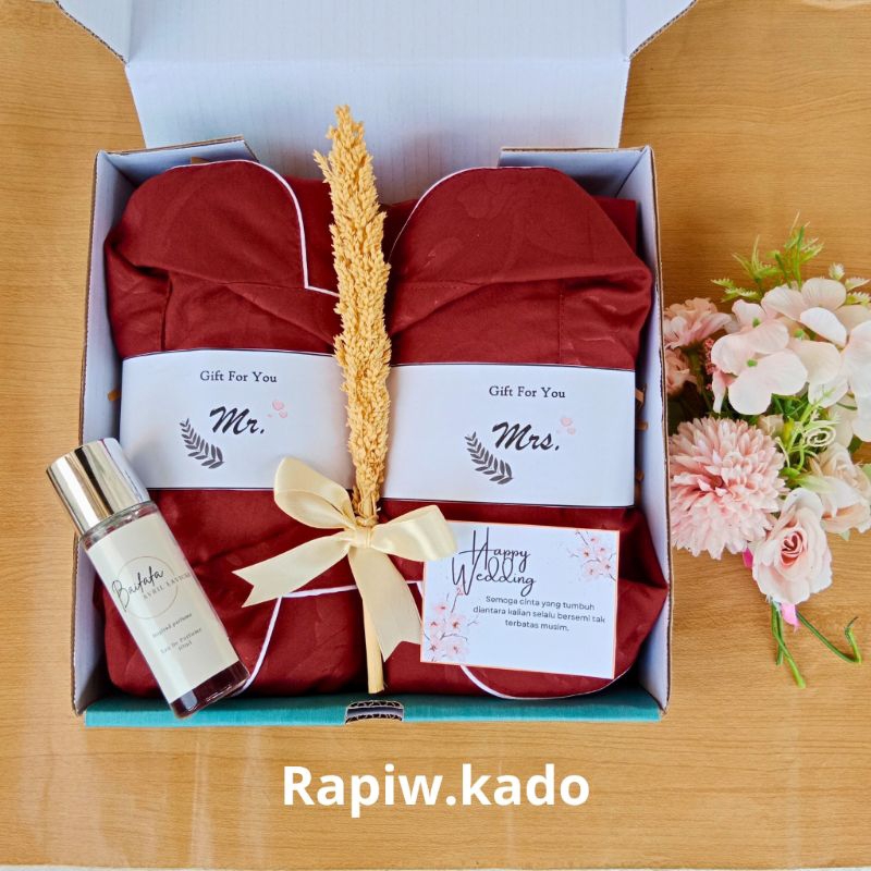 Hampers Piyama Couple Satin | Hampers Wedding Piyama Lucu | Seserahan Piyama | Hampers Anniversary | Kado Ulang Tahun