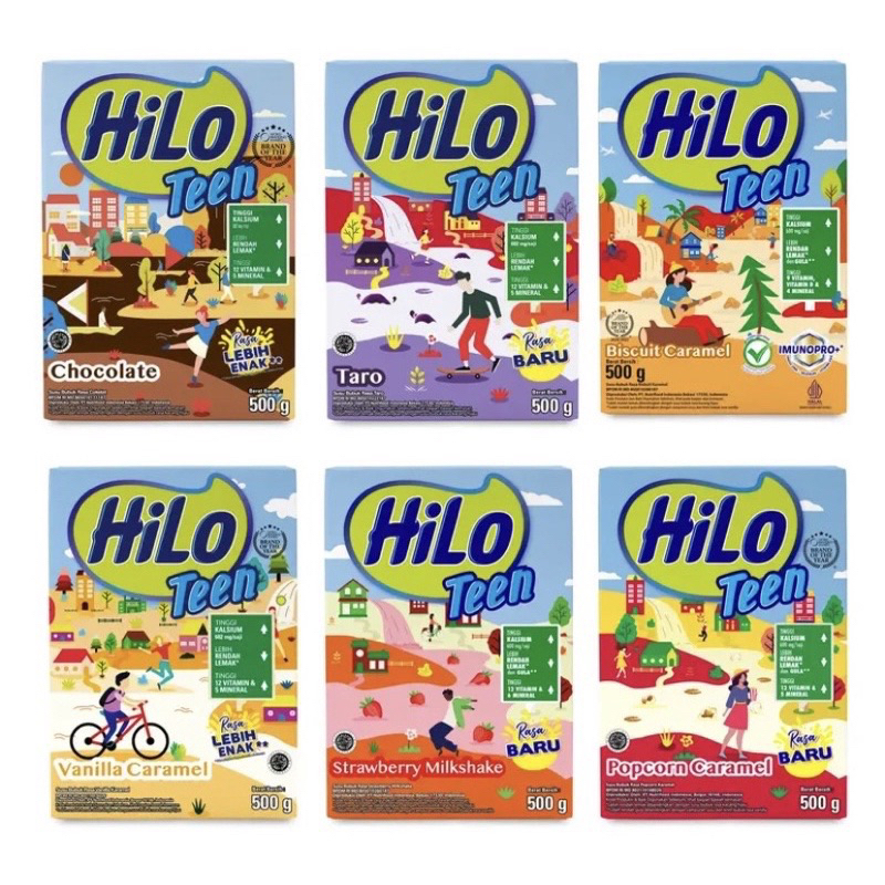 Hilo Teen Coklat / Vanila Caramel / Taro / Popcorn Caramel / Strawberry Milkshake / Biscuit Caramel 500gr / Original 400gr