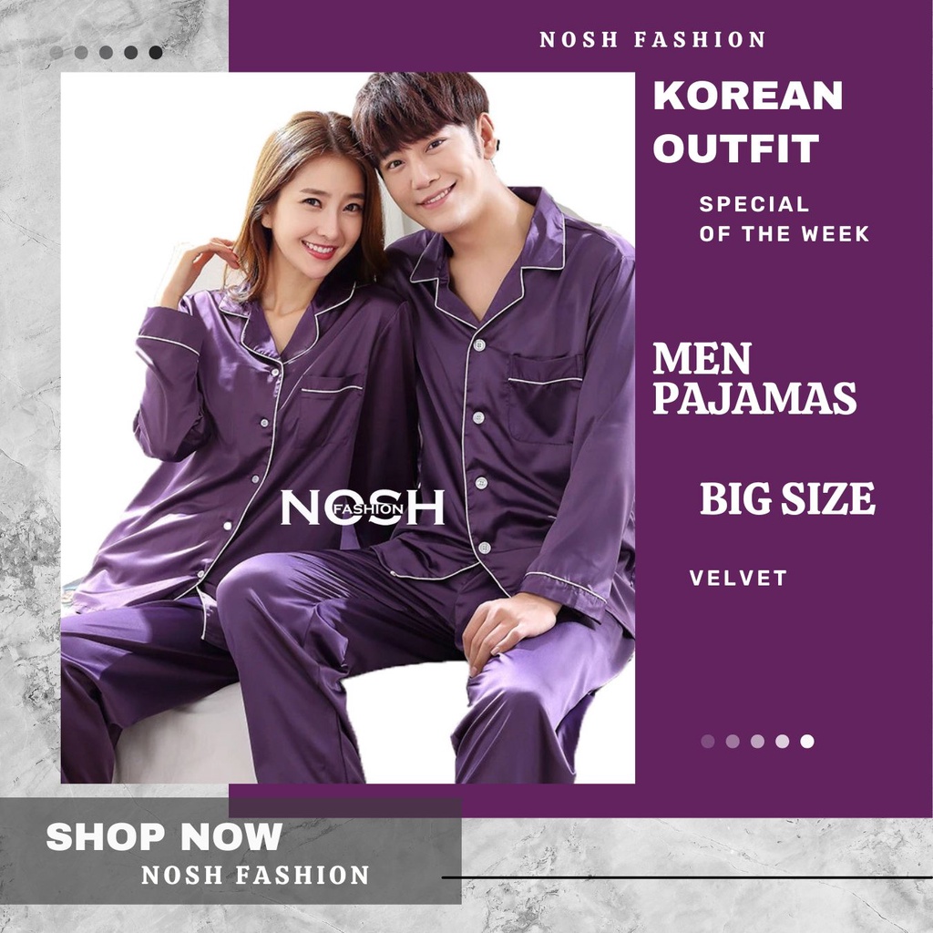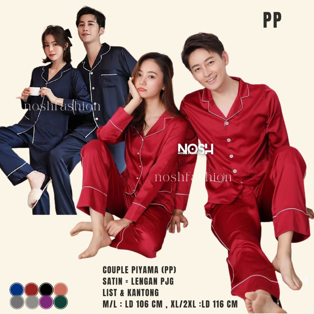 Baju Tidur Piyama Couple Lengan Panjang Satin M/L / Couple Pajamas Saten - NOSH