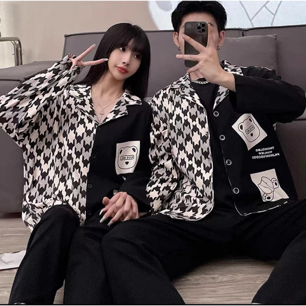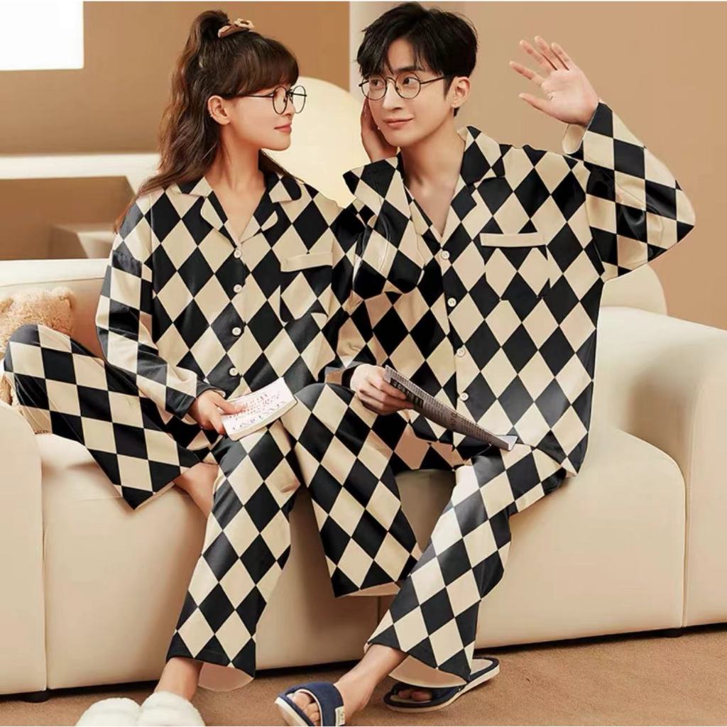 RULIF Setelan Piyama Baju Tidur Set Couple Pria wanita Model Krah Kancing Zemee 8701-7508