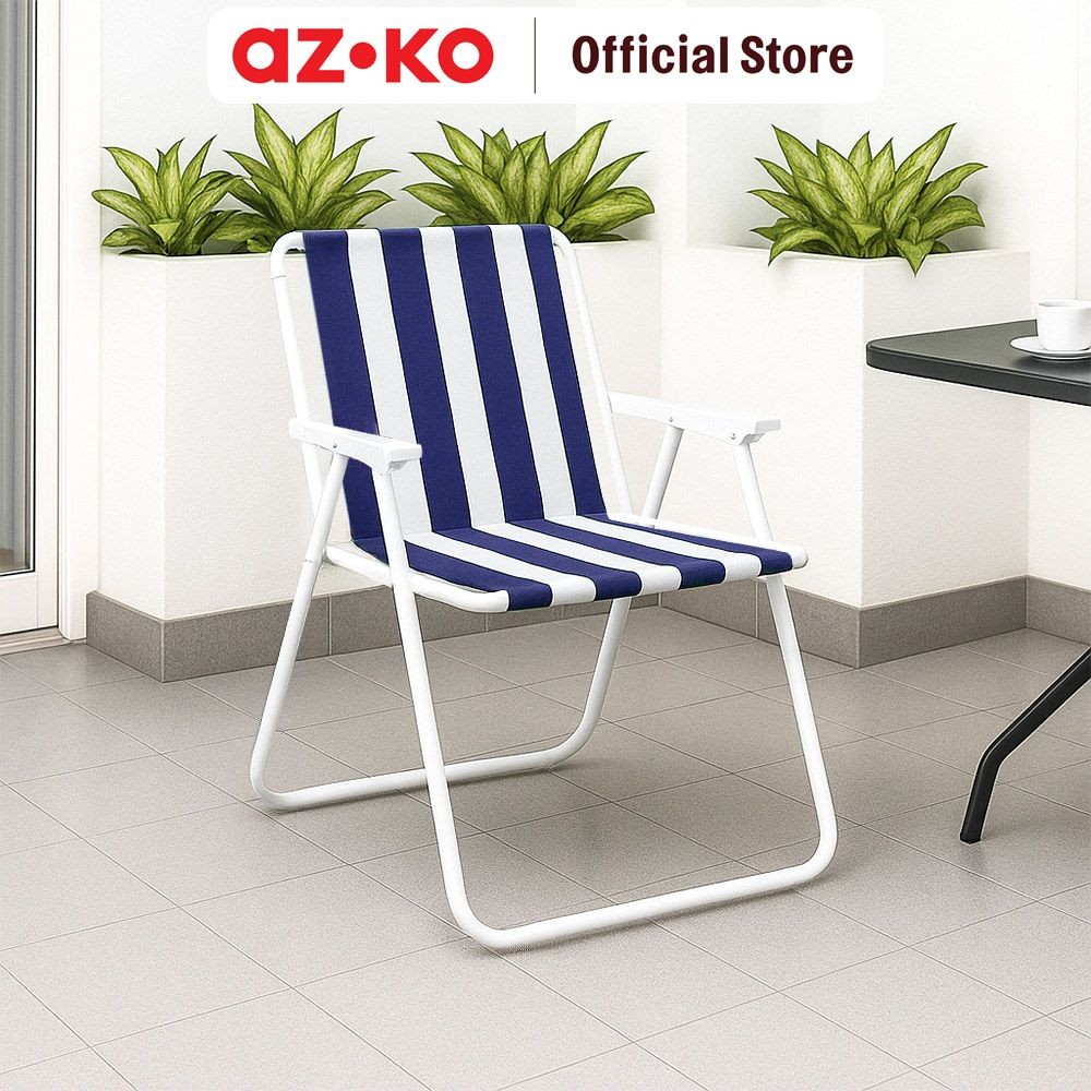 AZKO Soleil Spring Kursi Teras Stripe - Biru Balcony Chair Kursi Outdoor Serbaguna Furniture Rumah Tempat Duduk Kursi Halaman Balkon