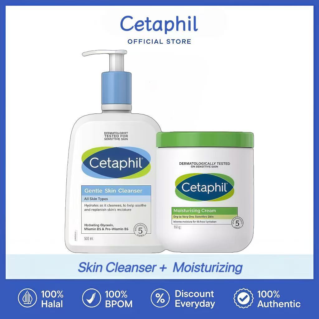 Paket Hemat 2in1 Cetaphil Gentle Skin Cleanser 500ml & Moist Moisturizing Cream 550g Paket Kombo | Paket Hemat 2-in-1 de