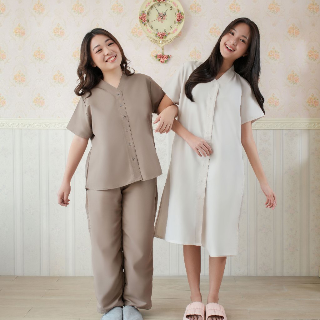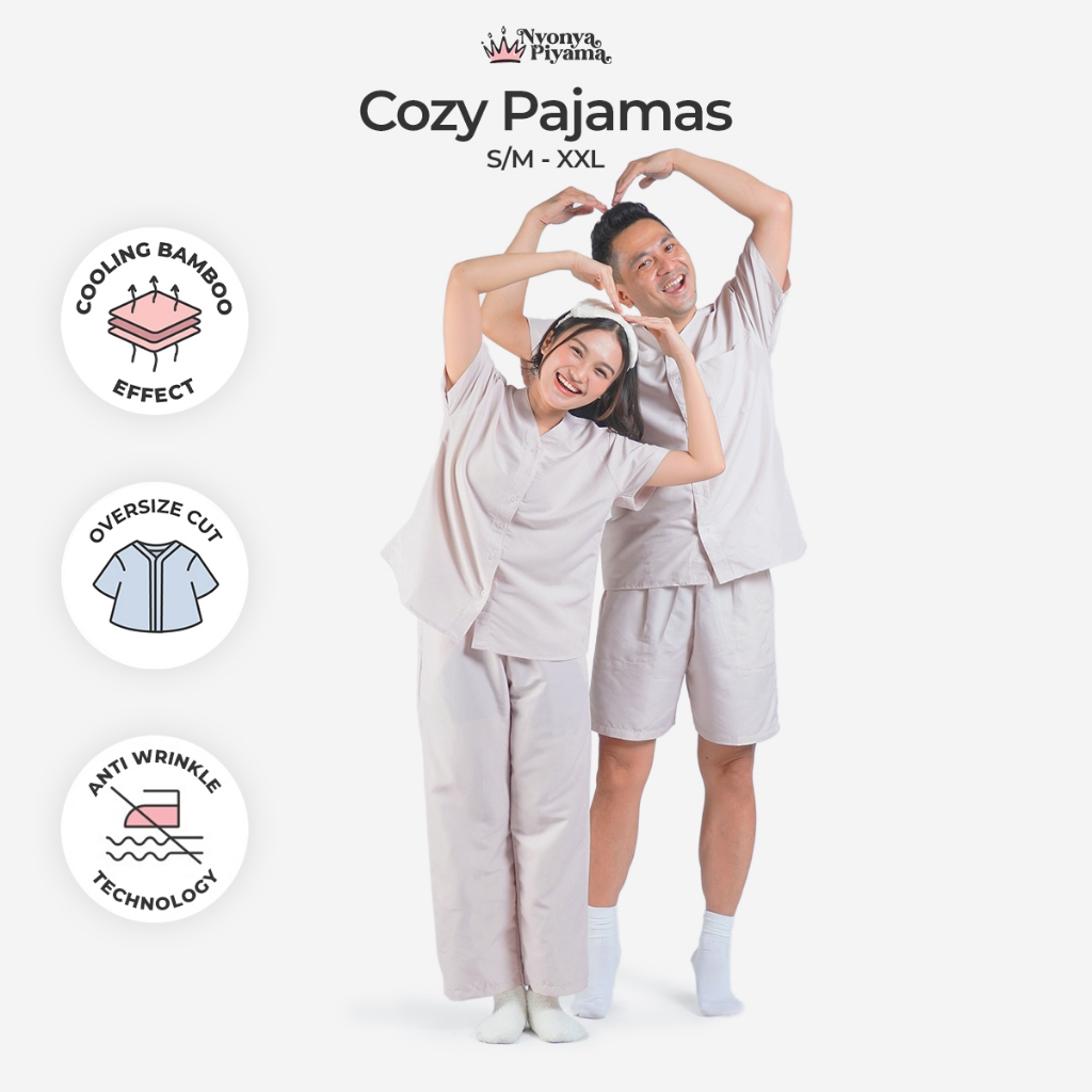 [BEST SELLER] Nyonya Piyama Poly Bamboo Oversized Cozy Set Couple Polos (Oat Cozy)