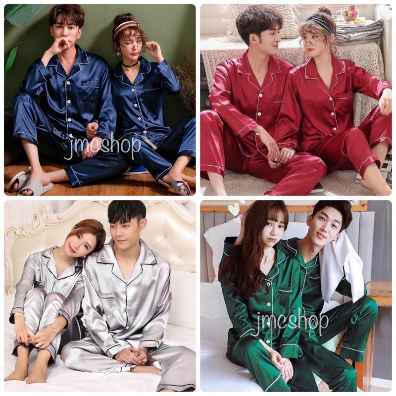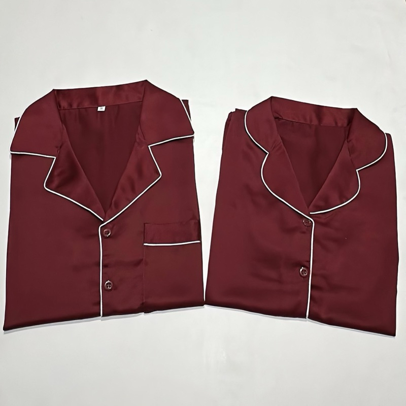 paket piyama couple panjang satin premium cwek cwok / pria wanita