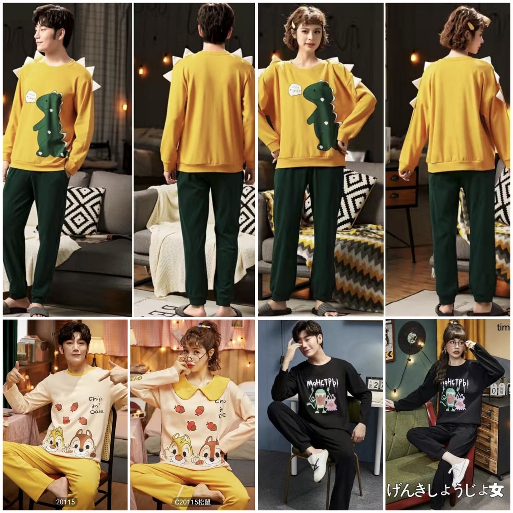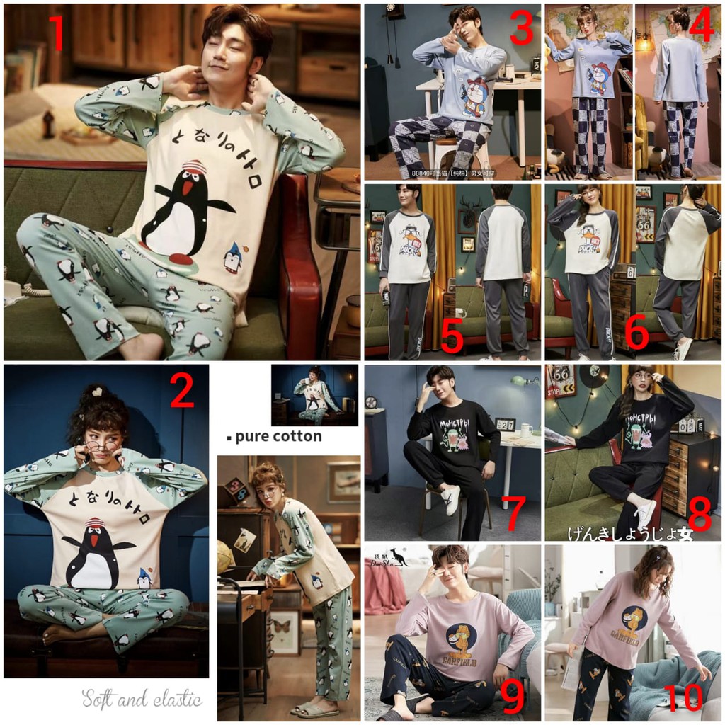Baju tidur piyama PP couple bahan kaos katun tebal import