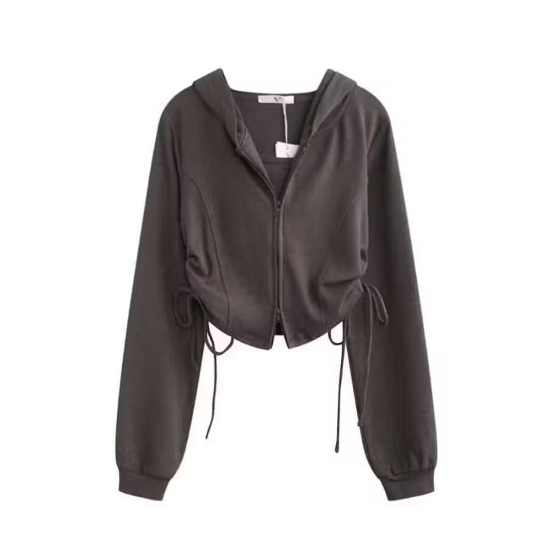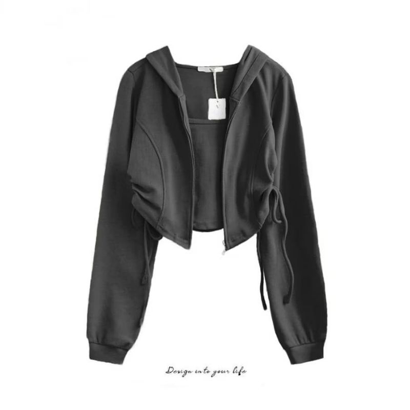 Adella crop jaket polos wanita model tali serut Sweater atasan hoodie zipper wanita kekinian Murah Gratis Ongkir