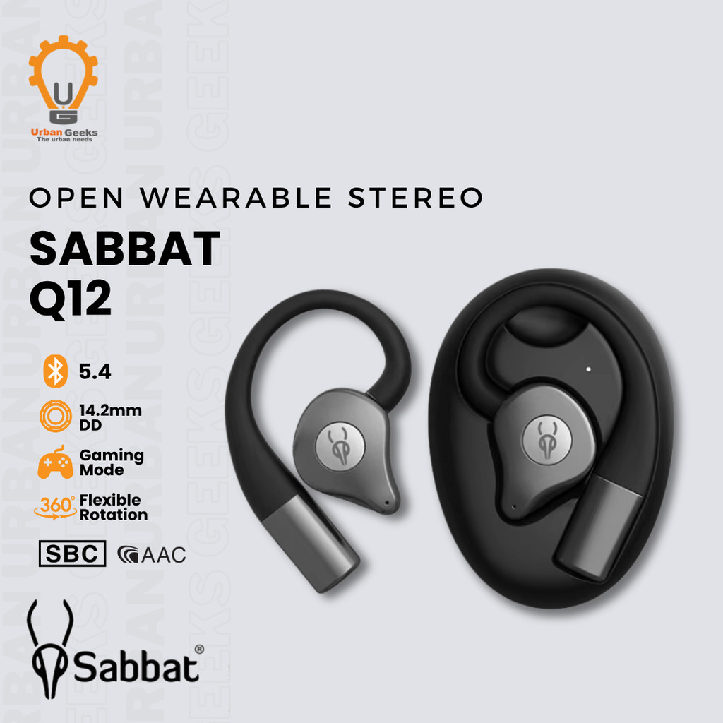 Sabbat Q12 Open Wearable Stereo Wireless Earbuds HD Calls Noise Reduction Bluetooth 5.4 Lightweight