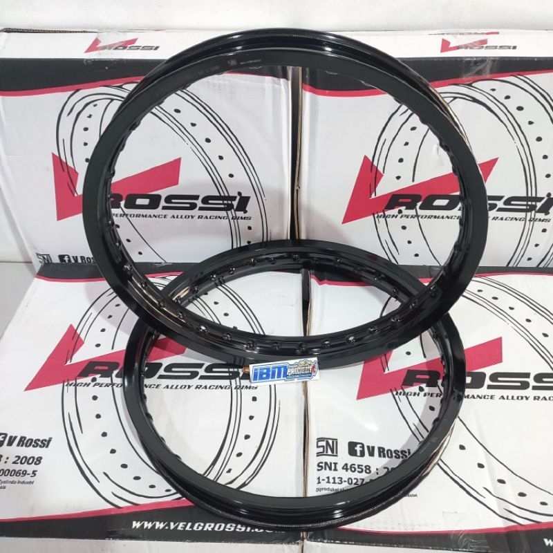 Sepasang Velek Velg Rossi Hitam Glossy 140/160/185.17,Velek Velg Vrossi Hitam Glossy Gilap 140/160 Ring 17