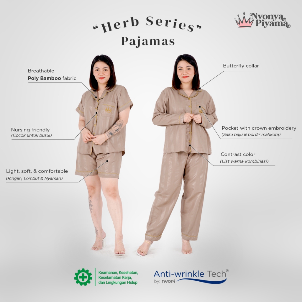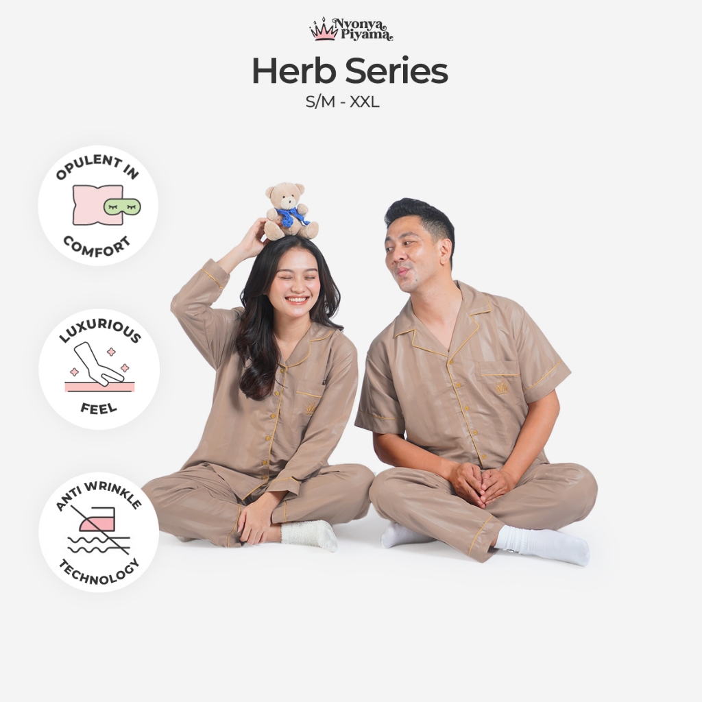 [BEST SELLER] Nyonya Piyama Poly Bamboo Set Piyama Couple (Clove Polos Herb)