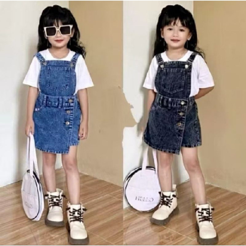 Setelan Overall Rokcela Usia 1_7Tahun Bahan Jaens