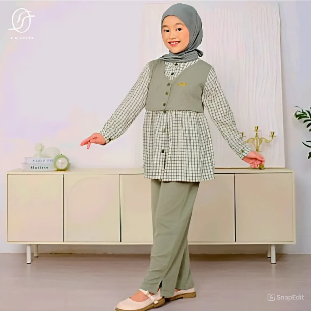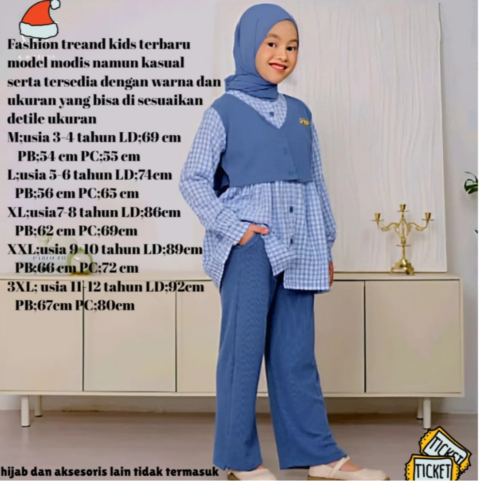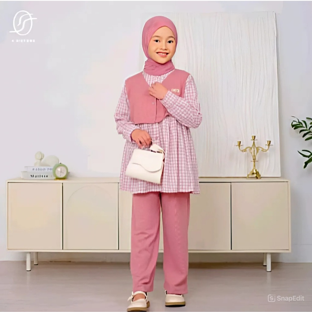 Stelan Anak Perempuan Kasual Nan Modis Helena Terbaru Bahan Knit Premium Mix Salur Kotak Berkualitas Yang Di Jamin Nyama