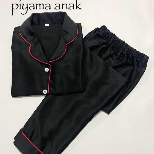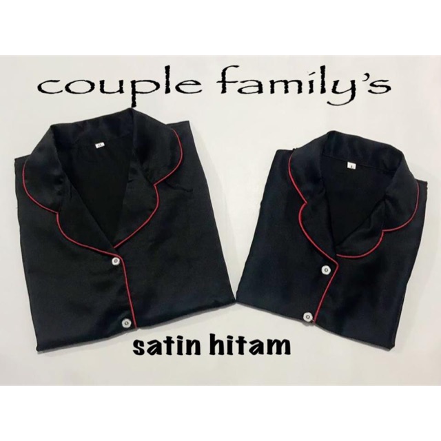 Piyama SATIN HITAM exclusive bisa couple mom kids dad and family