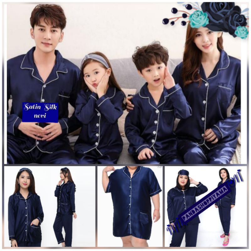 baju tidur piyama satin polos COUPLE SET / setelan pasangan keluarga lengan celana panjang nevi