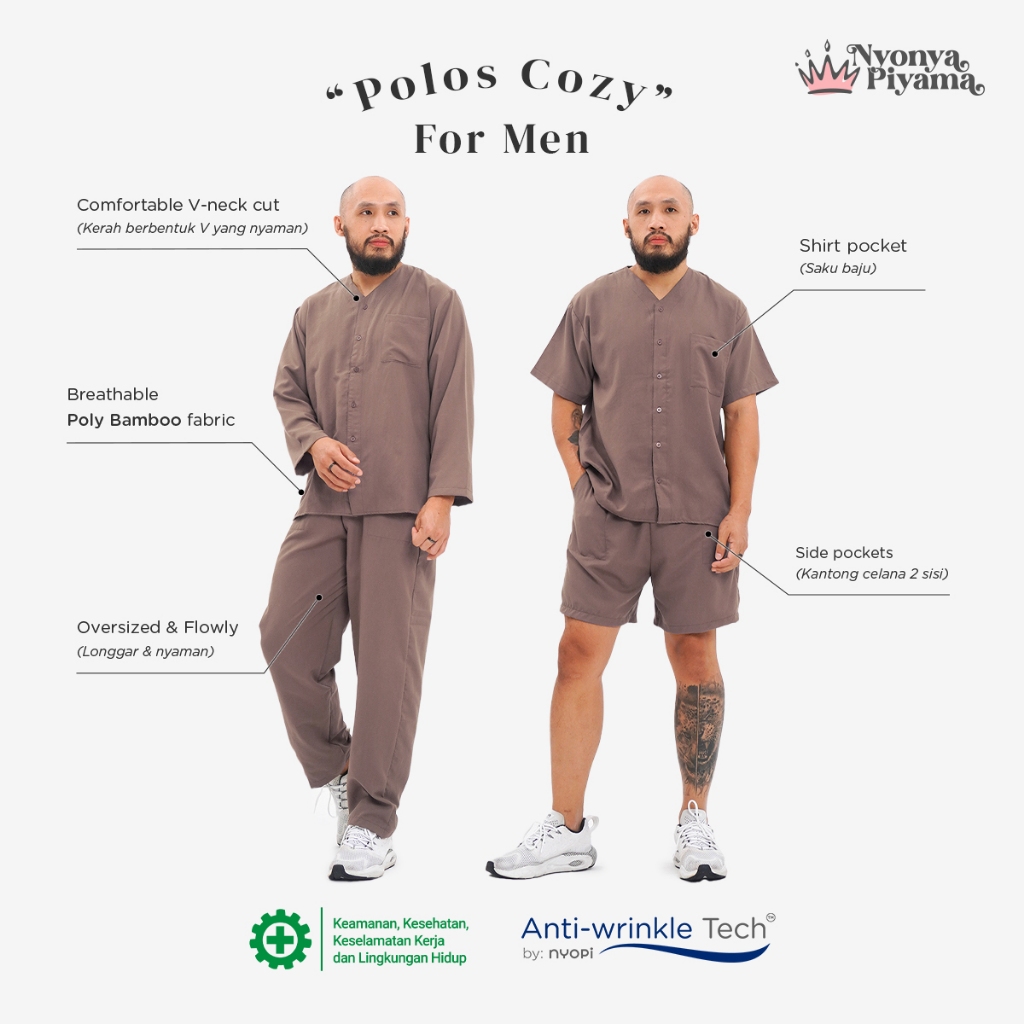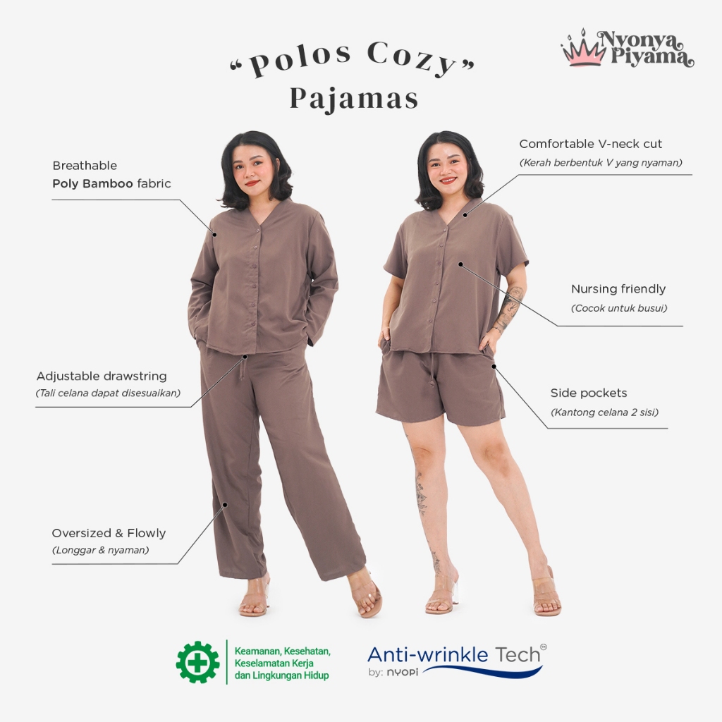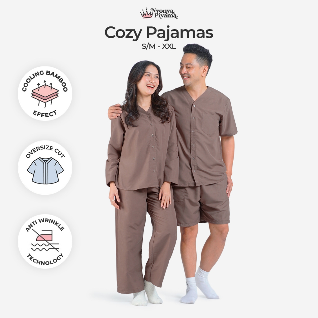[BEST SELLER] Nyonya Piyama Poly Bamboo Oversized Cozy Set Couple Polos (Peanut Cozy)
