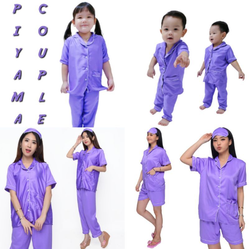 baju tidur couple keluarga satin polos set celana panjang stelan piyama lengan pendek piama pajamas