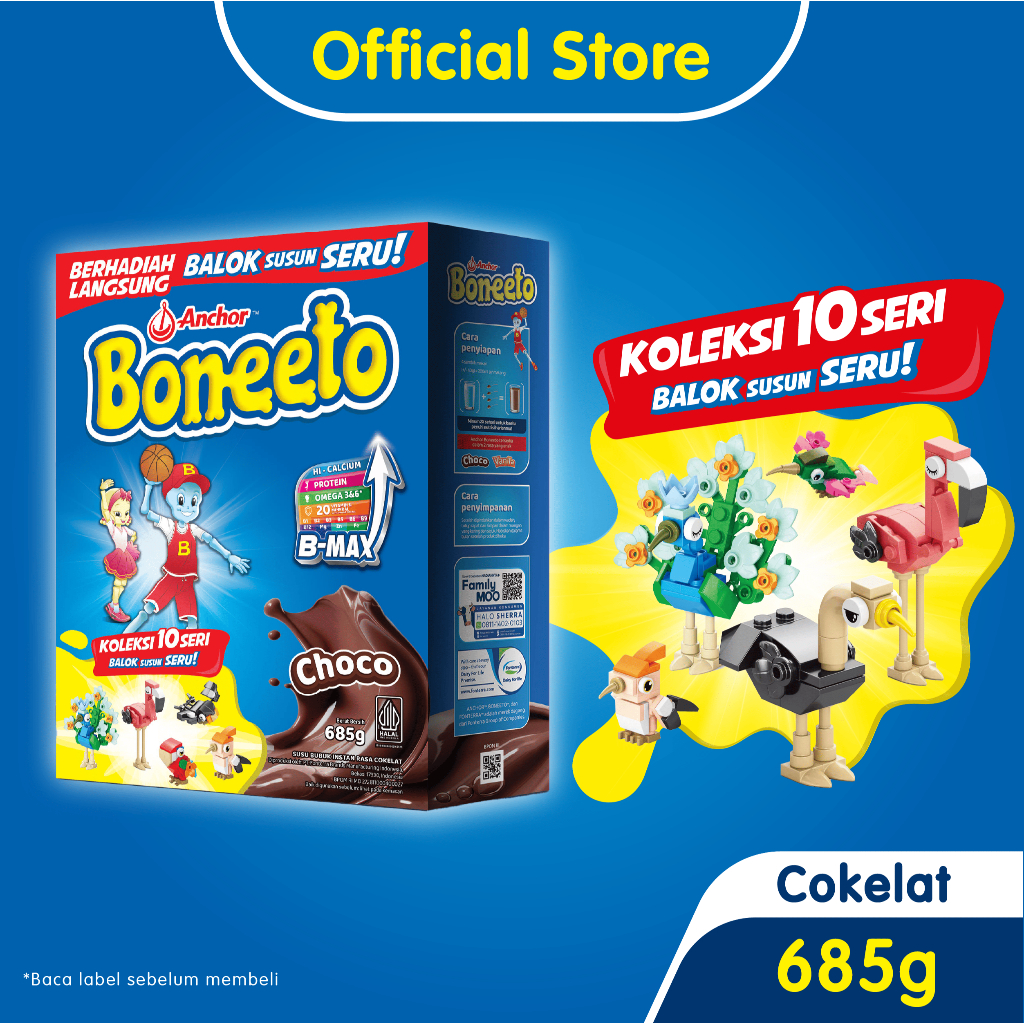 Boneeto Susu Bubuk Anak Sekolah Yummy Choco 685g - Nutrisi Pertumbuhan Anak untuk Daya Pikir dan Tubuh Aktif