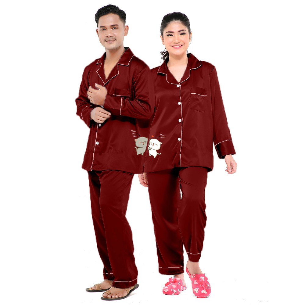 Zavyn Piyama Satin Couple Long Sleeve Cat Miss You