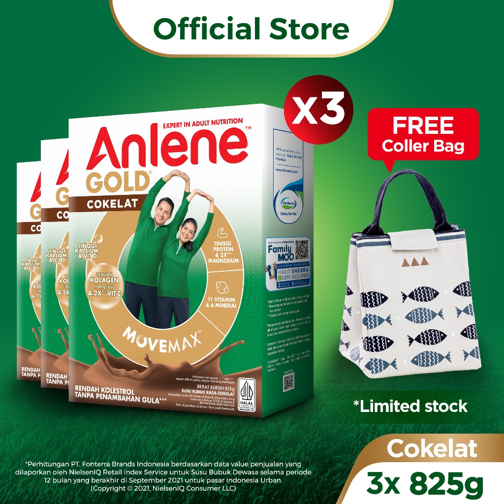 Anlene gg00ldss 5X Susu Bubuk Dewasa Cokelat 3 x 825g - Nutrisi Tinggi Kalsium Untuk Tulang, Sendi, dan Otot