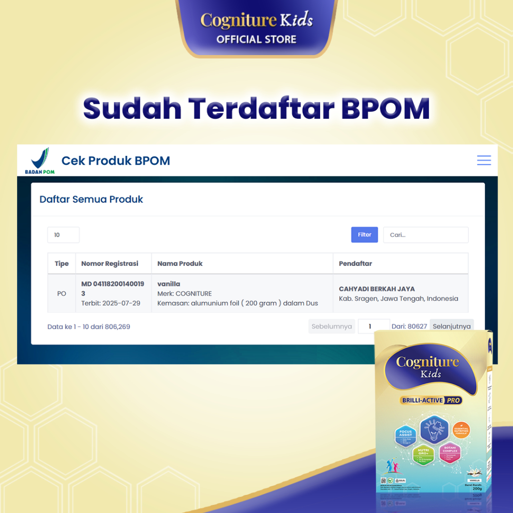 [PRODUK NO 1] Cogniture Brilli Active Pro Susu Kecerdasan Anak Dari Nutrisi Alami Rasa Vanilla