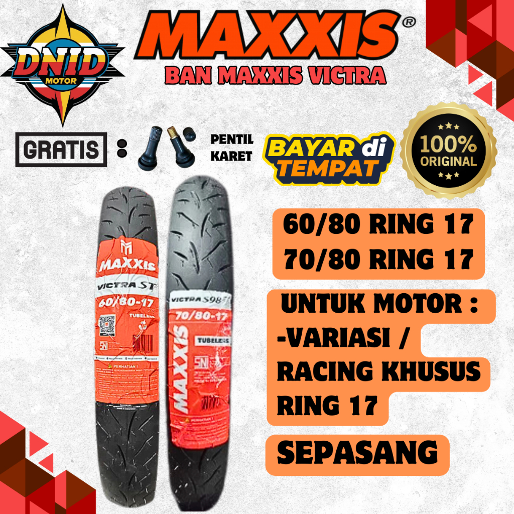 PAKET SEPASANG BAN MAXXIS VICTRA TUBELESS ( 60/80-17 & 70/80-17 ) BAN LUAR MOTOR VARIASI ATAU VELG RACING RING 17 ORIGINAL
