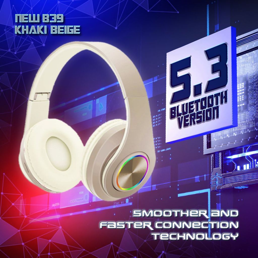 Avvic B39 Headphone Bluetooth 5.3 Wireless Headset Bando Mono Bass Hifi Sound Music RGB LED Light
