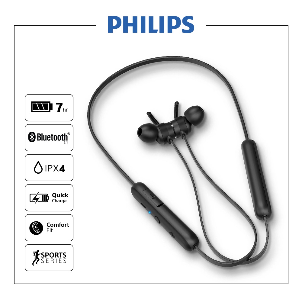 Philips TAE1205 Black In-Ear Wireless Sport Earphone / TAE1205BK /1205