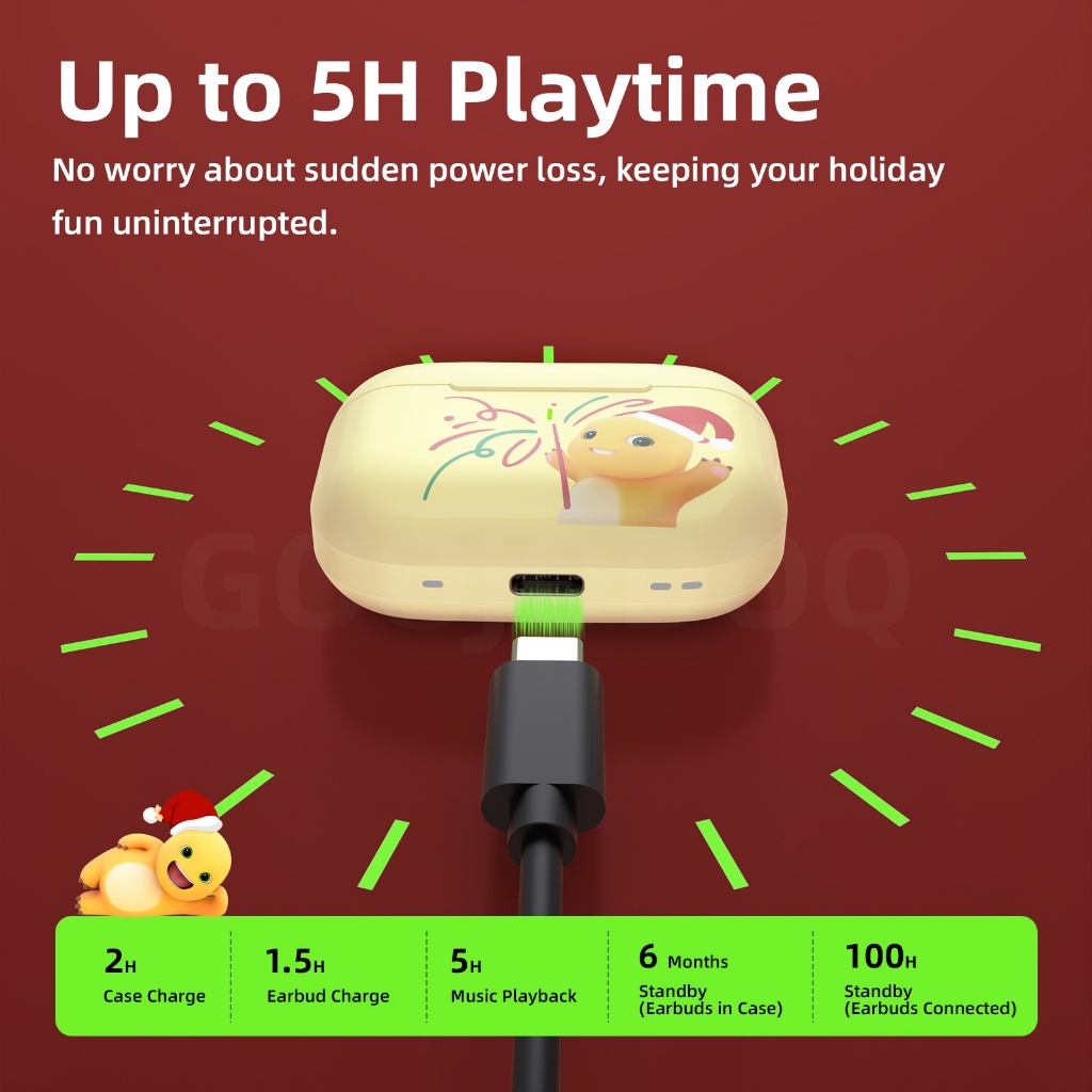 Goojodoq TWS-A5 Earphone Bluetooth J206 5.3 Headphones Wireless Sports Bass Noise Reduction Battery Efficient Quick Pairing wit