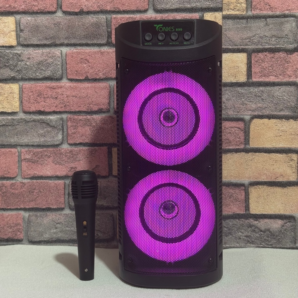Bluetooth Speaker 8 Inch LED Bonus Mic Portable Tonies-899 Full Bass Free Microphone Karaoke
