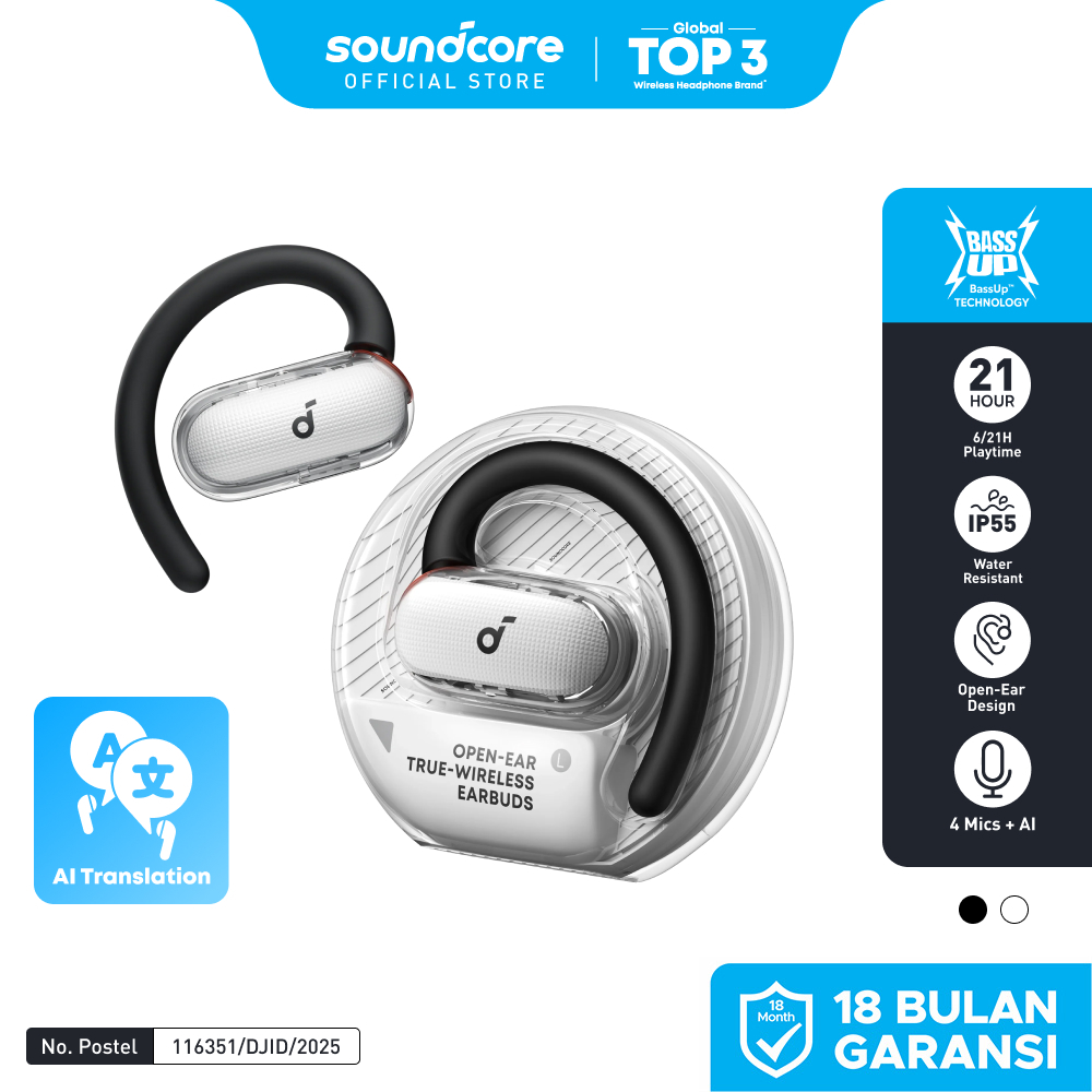 Soundcore V40i by Anker Open-Ear Headphones Clear Design Lidless Case, Wireless Earbuds with Adjustable Earhooks, 4 Adjustable Positions