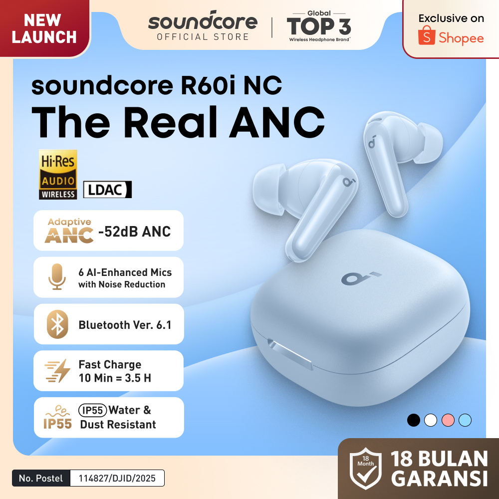 Soundcore R60i NC (R50i NC Upgrade) by Anker, Real-Time Adaptive Noise Cancellation, Hi-Res Sound, AI Translation Earbuds, 50H Playtime