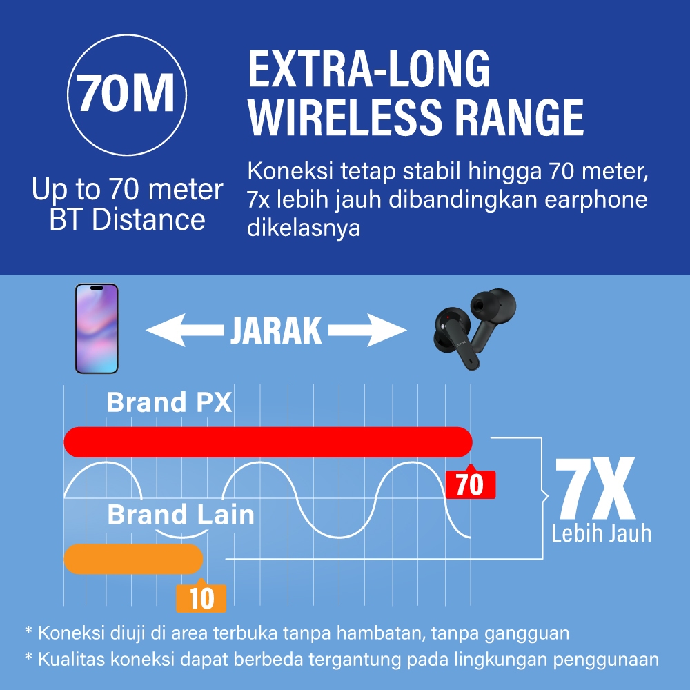 Headset TWS Earphone Bluetooth 6.0 Headphone Earbuds True Wireless PX Q60i - Black