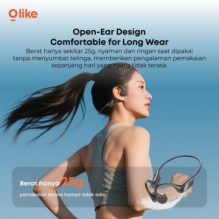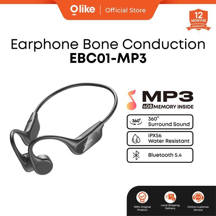 OLIKE EBC01-MP3 Earphone Bone Conduction 4GB Memori Internal up to 1000 Songs Bluetooth 5.412 Jam Play Time IPX56 Waterproof 360°
