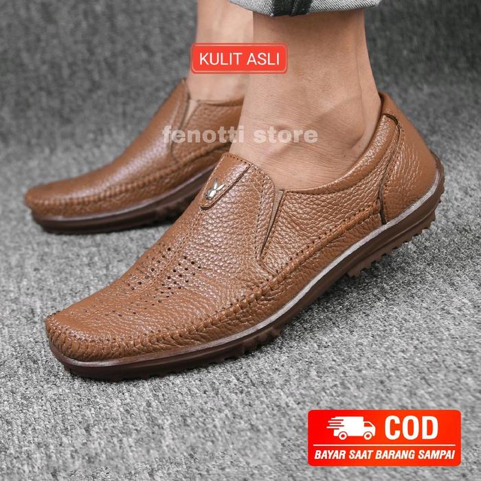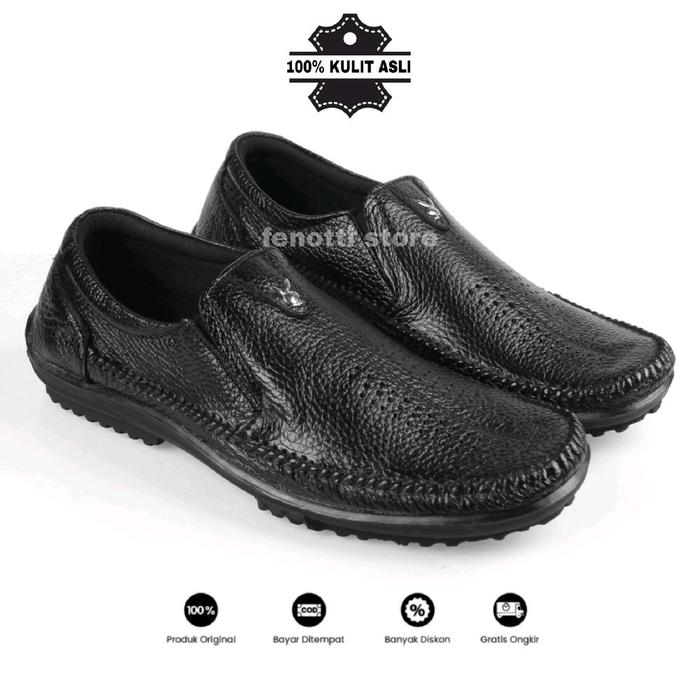 fenotti sepatu kasual pria kulit asli sole tvr anti slip sepatu kasual formal kulit asli Flat Shoes Kerja - hitam 38