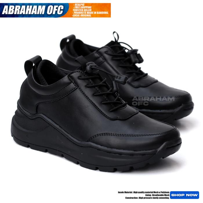 ABRAHAM - Sneakers Pria Full Black – Sepatu Kasual dan Formal Desain Keren Casual Hitam Kerja Shoes Merah - HITAM 39