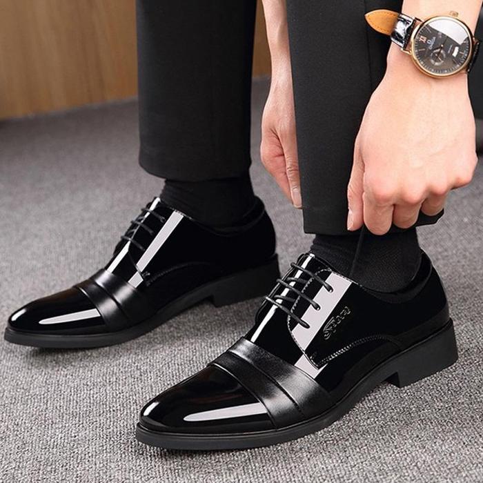 Sepatu Pria Casual Pantofel Formal Kerja Kulit Model Shoes Cowok Leather Slip Resistant 8801 - black01 39