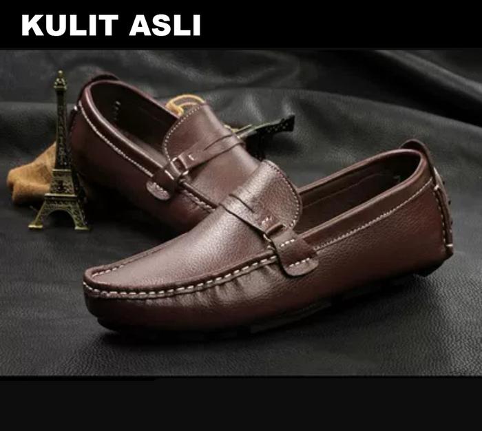 Sepatu Pria Kulit Asli Slip On Casual Kerja Kantor Cowok Pantofel Formal - Hitam 38