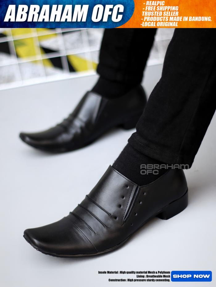 Sepatu Formal Pantofel Kulit Asli Kerja Hitam Ukuran Besar 44 45 46 47 Pria Shoes - HITAM 39