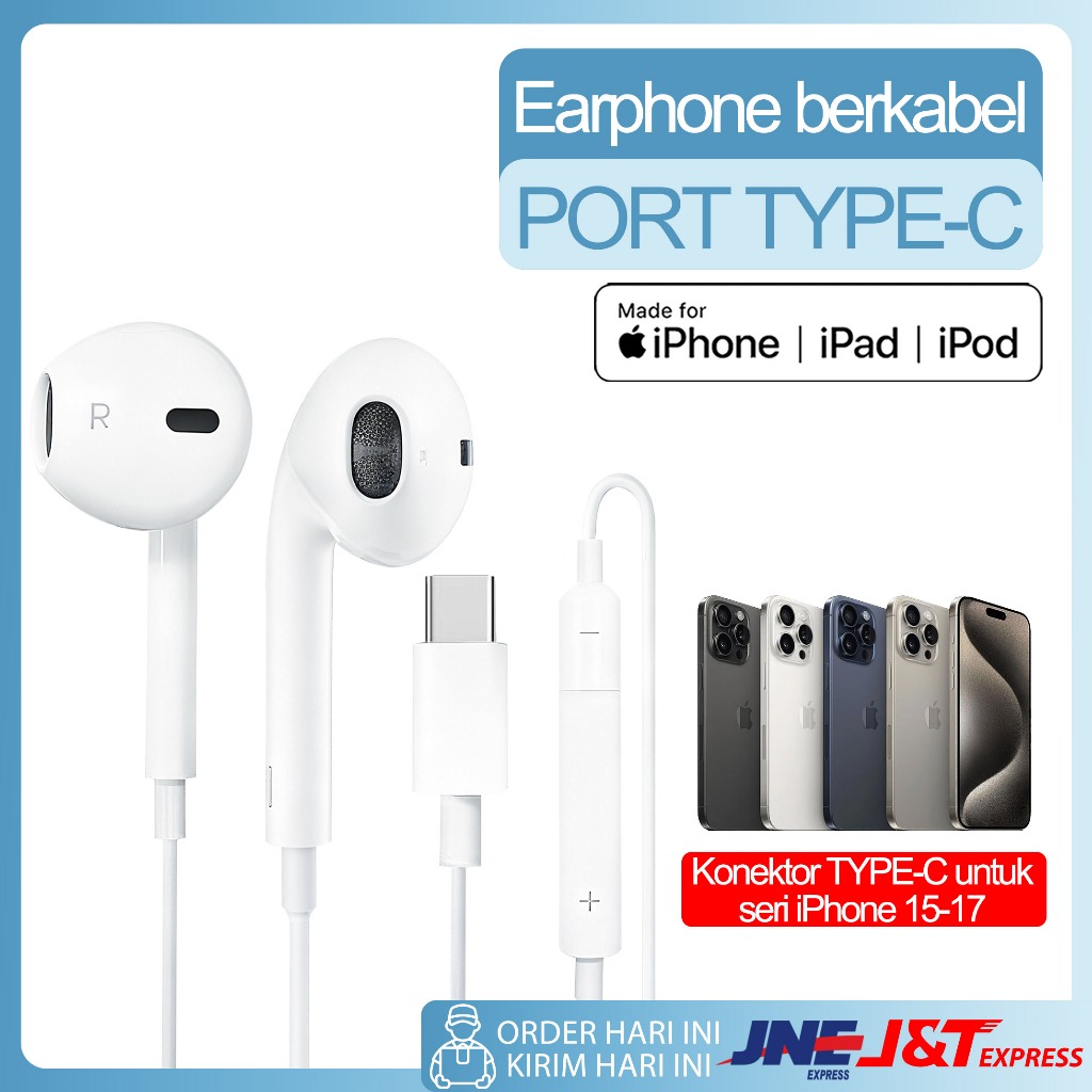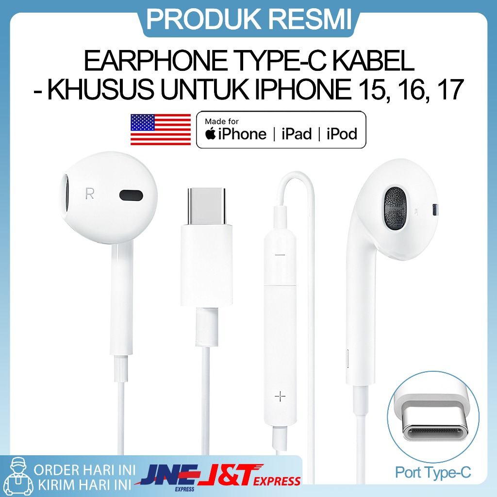 EARPHONE KABEL APPLE 100 PERSEN ORIGINAL - GARANSI 2 TAHUN COCOK untuk iPhone 8-17 Pro Max, iPad